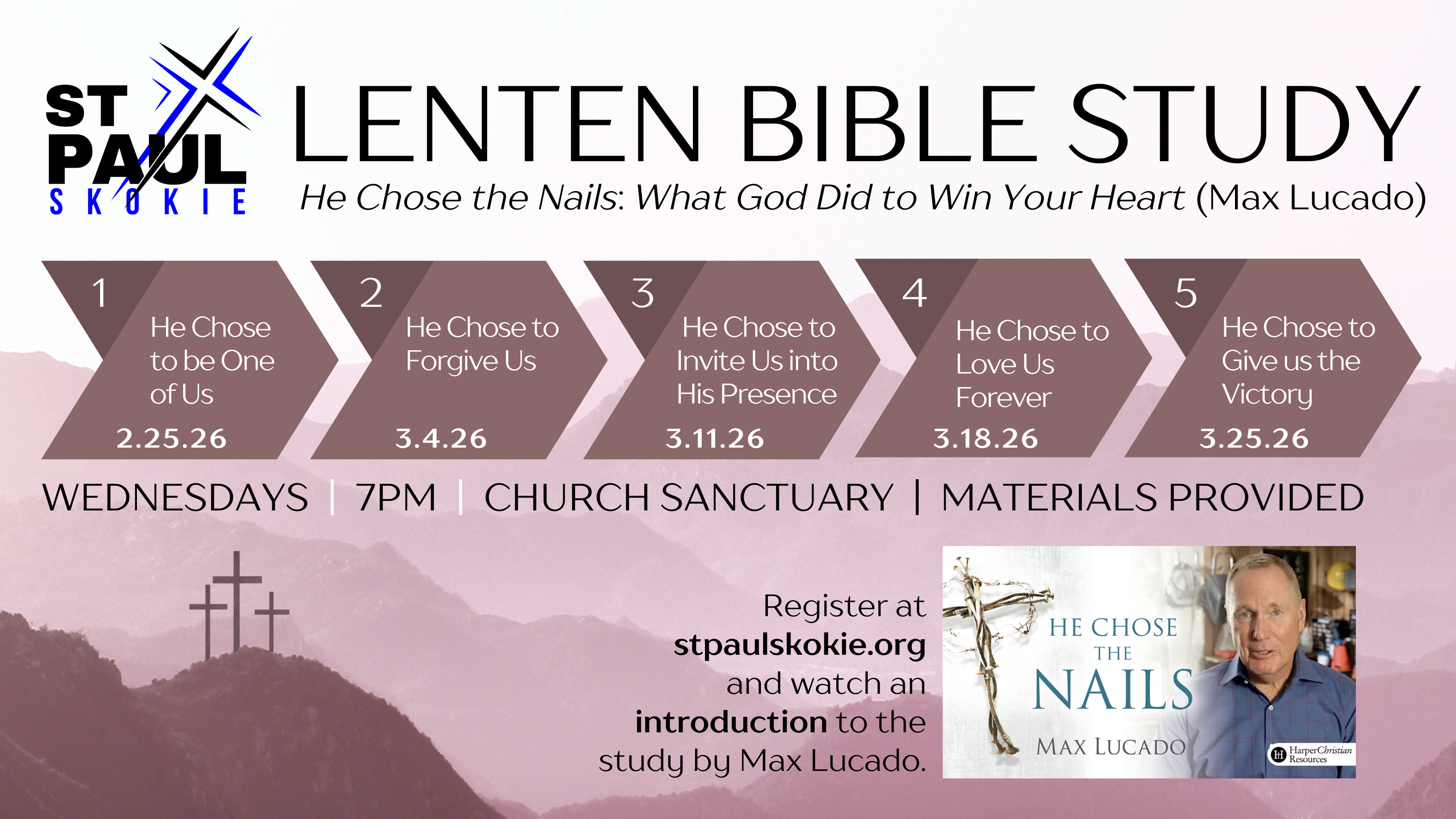Interested in joining a Men’s Bible Study? Contact Pastor Biar for more information: 512.581.1185 or pastorbiar@stpaulskokie.org.